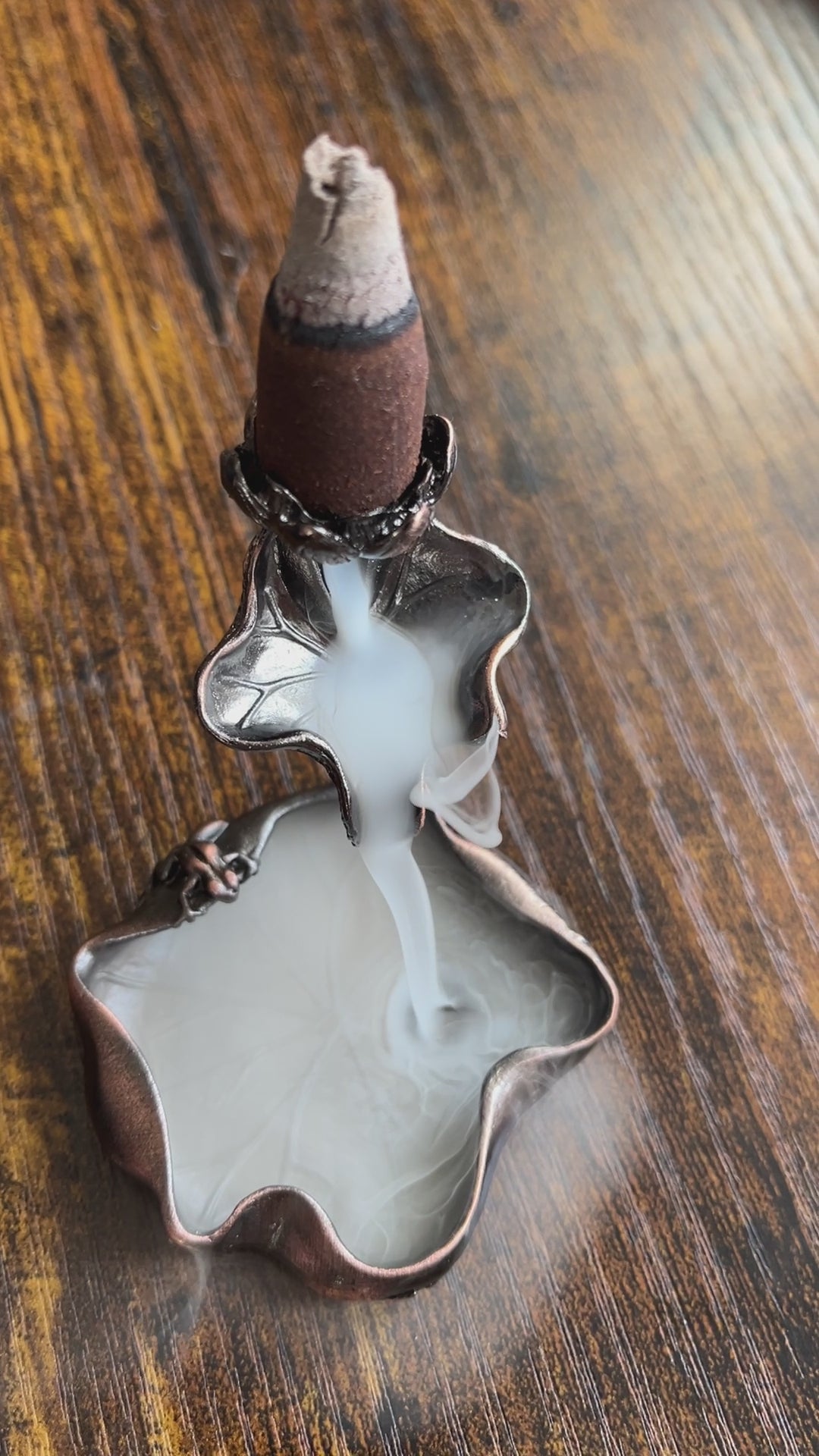 Drift away watching a smoky waterfall flowing gracefully from a lotus leaf into a dreamy mesmerising pool of smoky clouds.